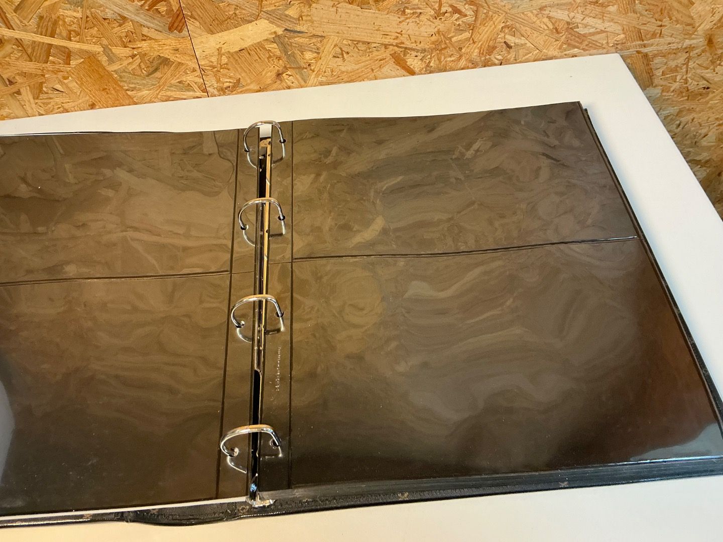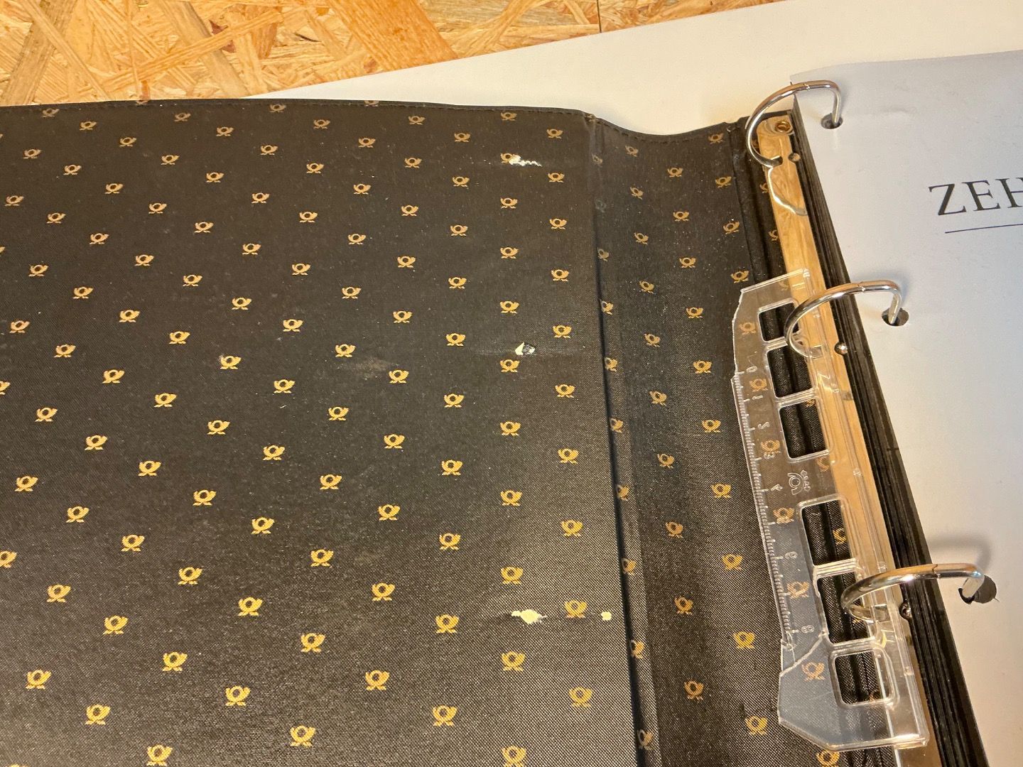 gut erhaltenes Album mit Gebrauchsspuren, mit 24 2er Hüllen schwarz, Blattheber ist defekt, Innenseite links von den Ringen leicht eingerissen,