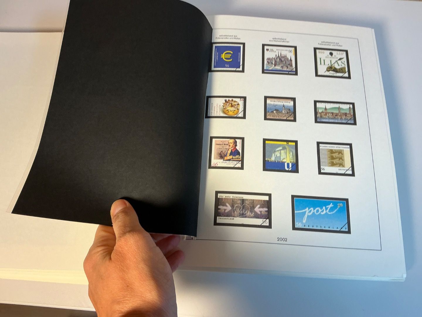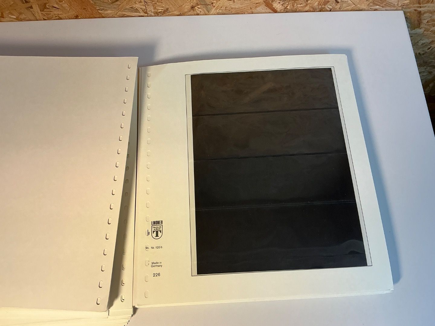 leere gut erhaltene Blätter mit Gebrauchsspuren, verschiedene Streifen wie angefallen, alle mit verschiedenen Aufdrucken, teilweise schwarzes Einlegeblatt