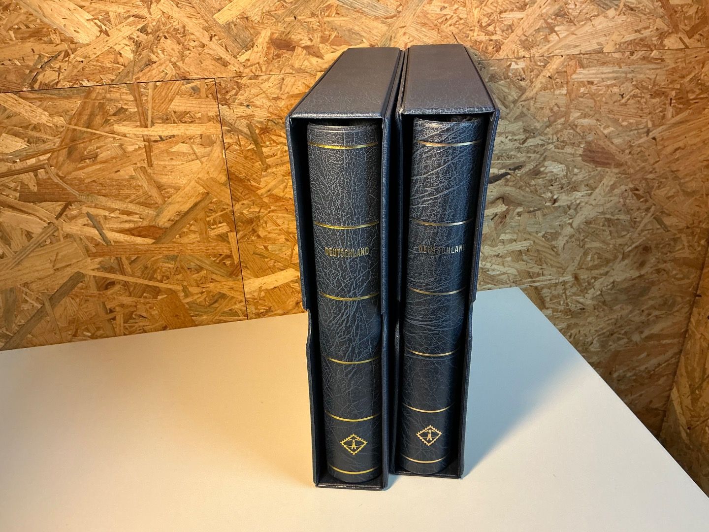 Leere gut erhaltene Binder + Schuber mit Gebrauchsspuren, 2x mit Aufdruck Deutschland Bundesrepublik blau, 2 Stück,