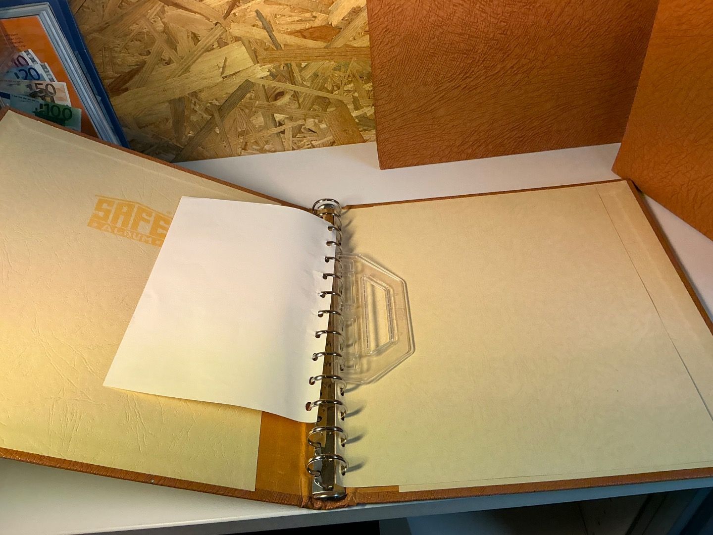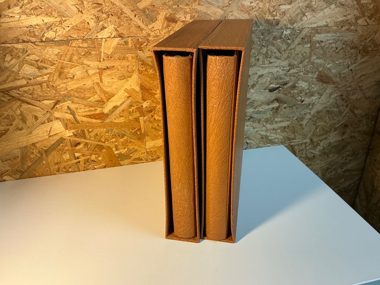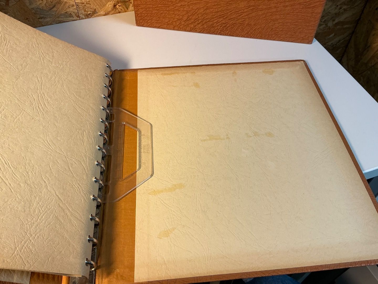 leere gut erhaltene Ringbinder mit Gebrauchtspuren, inkl. Deckblatt + Blattheber, inkl. Schuber, 1x innen Hinterseite fleckig 1x am Rücken Kleberreste