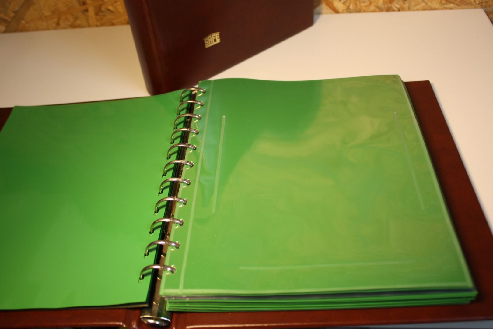 leere gut erhaltene Alben mit Gebrauchsspuren, jedes Album mit je ca. 50 Hüllen für ETB + grüne Zwischenblätter, Hüllen können leicht gelblich sein