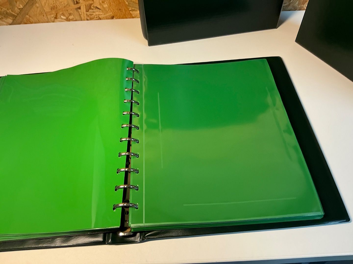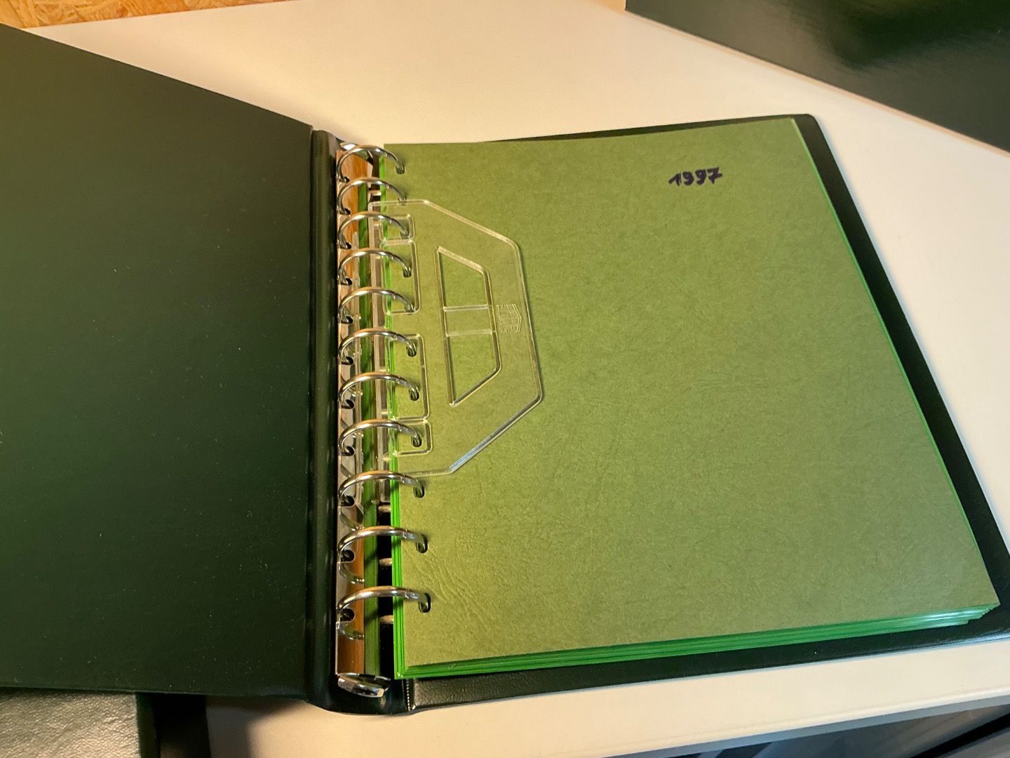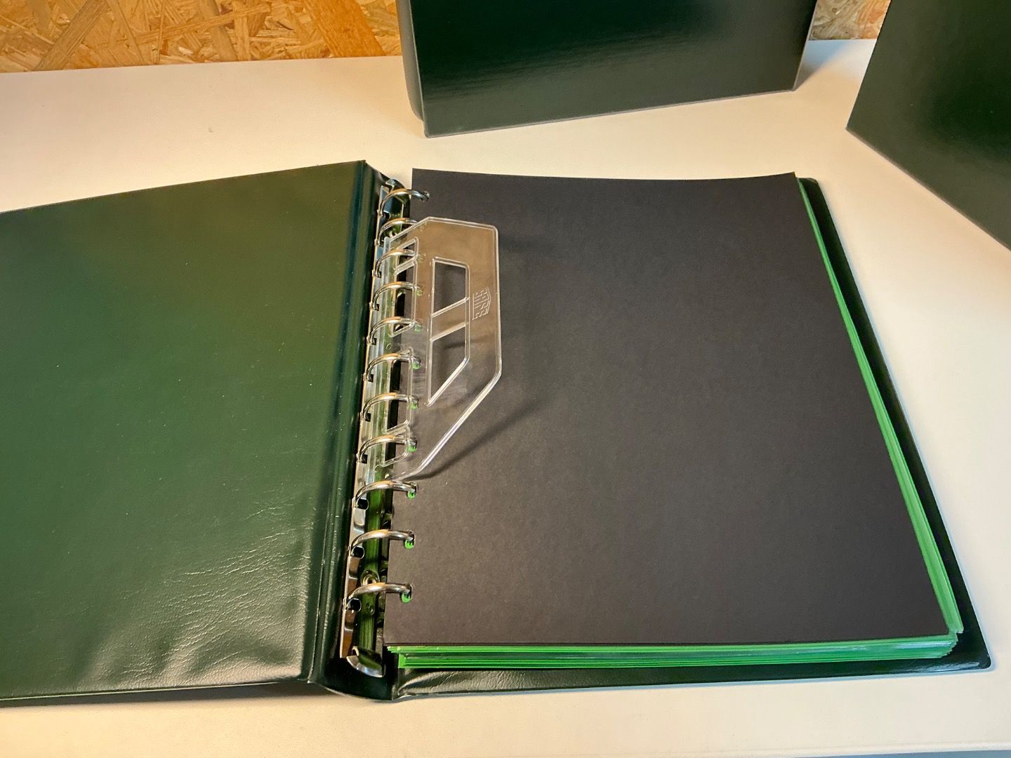 leere gut erhaltene Alben mit Gebrauchsspuren, jedes Album mit je ca. 50 Hüllen für ETB + grüne Zwischenblätter, Hüllen können leicht gelblich sein, die Deckblätter sind teilweise mit Jahreszahlen beschriftet