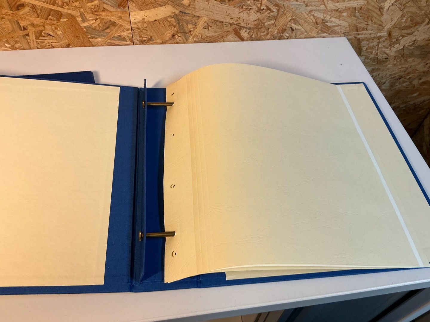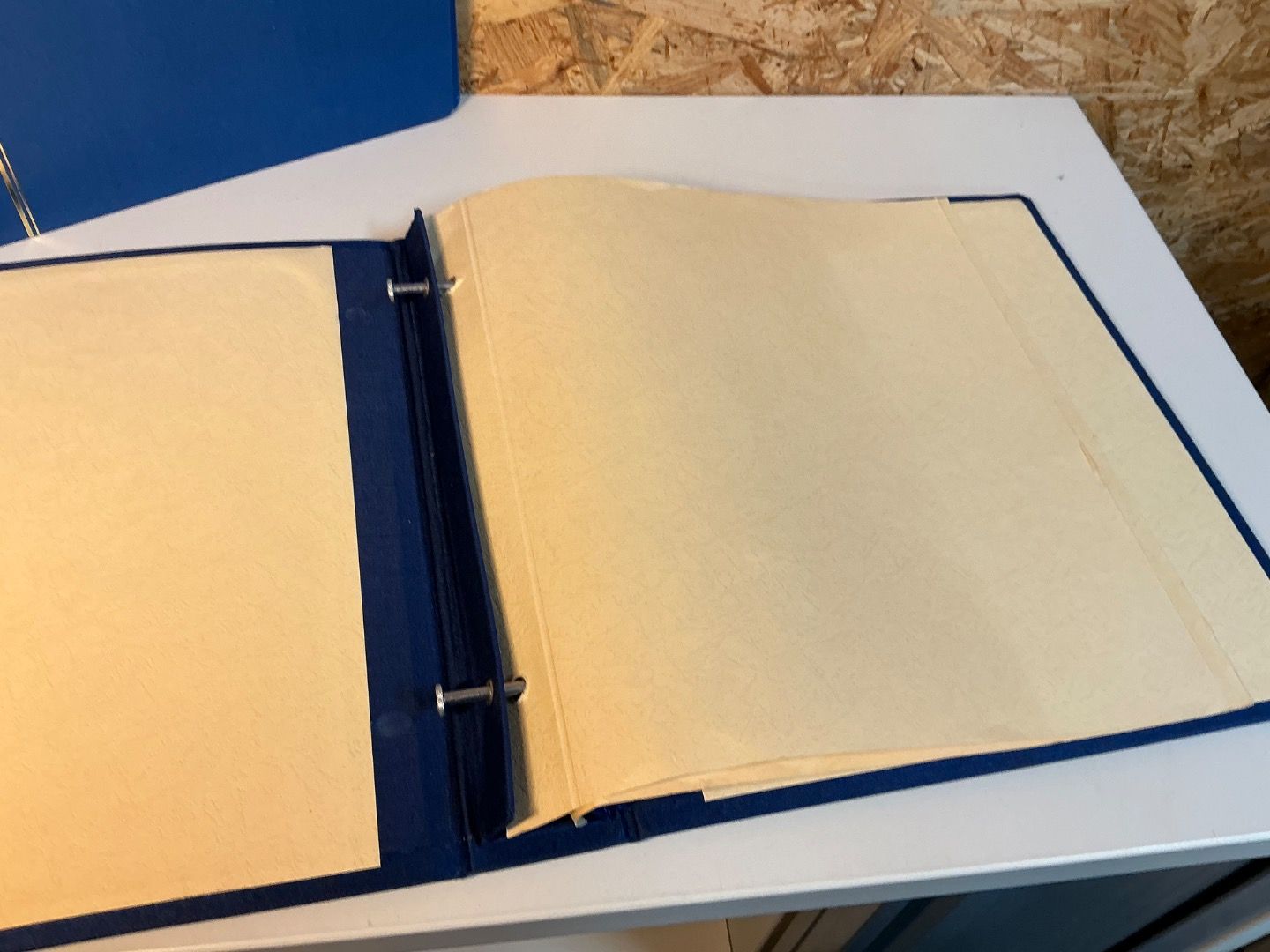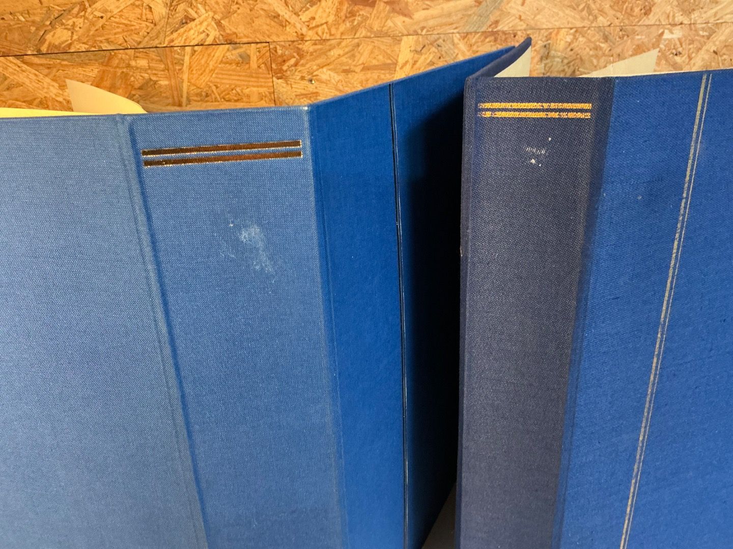 leere gut erhaltene Schraubdecken, beide Binder haben Flecken am Rücken, 1x 6cm breit in hellblau, 1x 5,5cm breit in dunkelblau