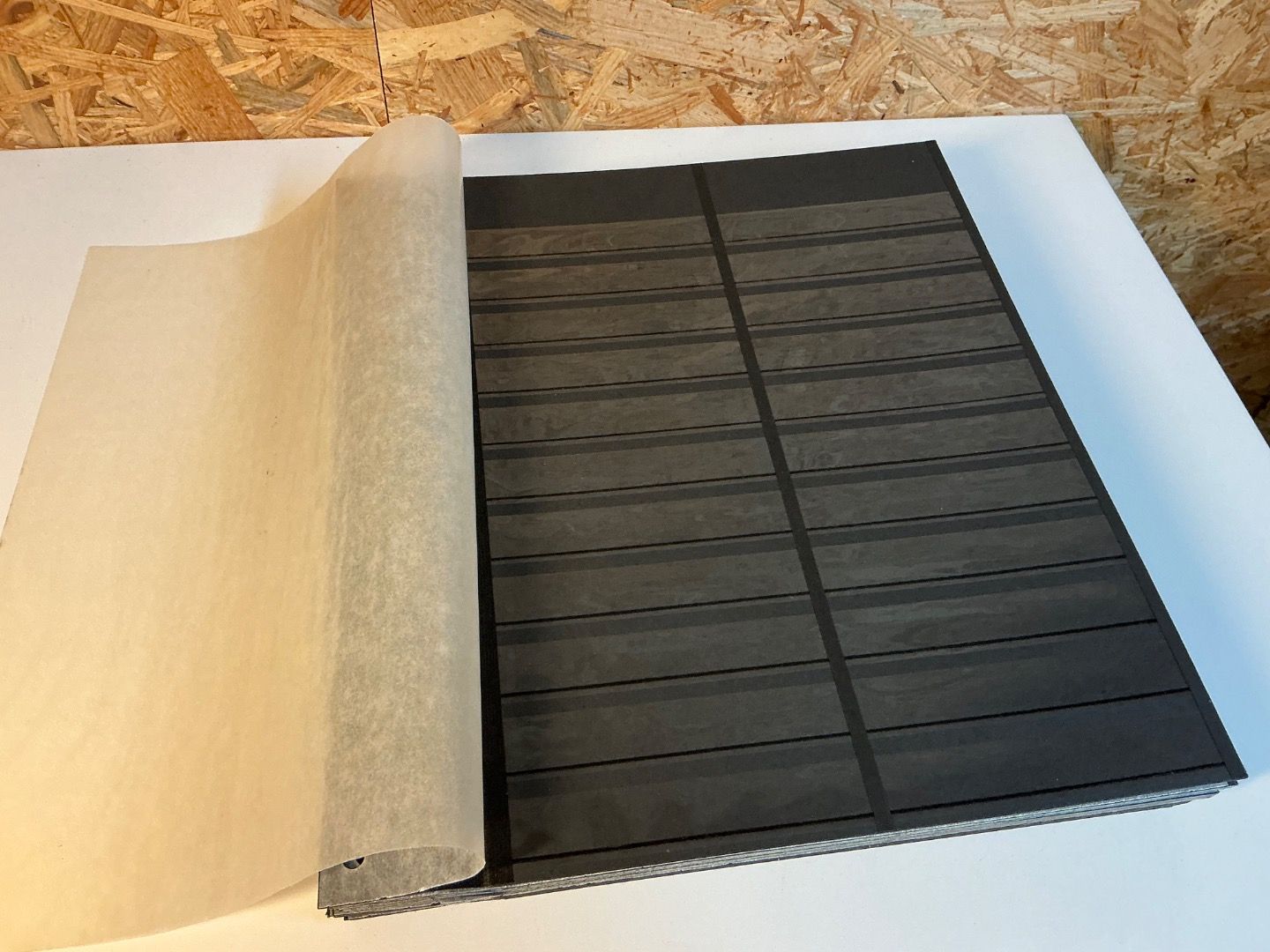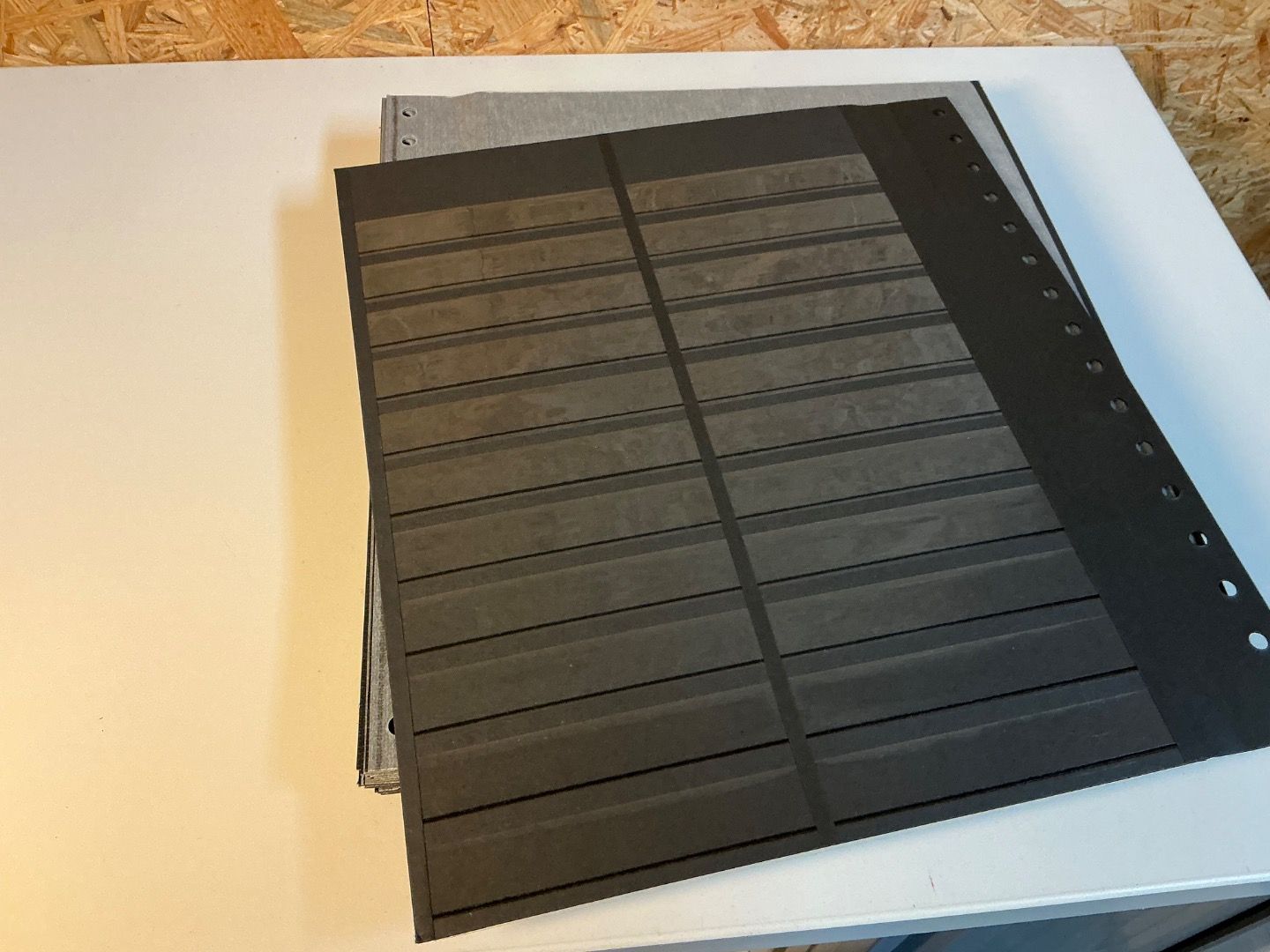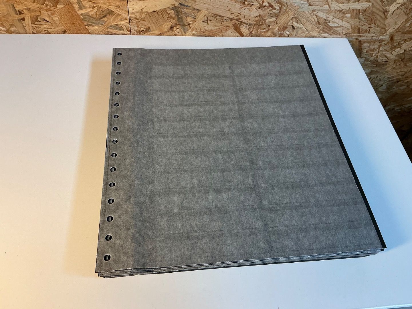 leere gut erhaltene Blätter mit Gebrauchsspuren, Pergaminblätter teilweise gelblich, Kabe Astra, 11 Klarsichtstreifen geteilt, schwarzer Karton, 16 Lochung passend für KLabe Delta Binder