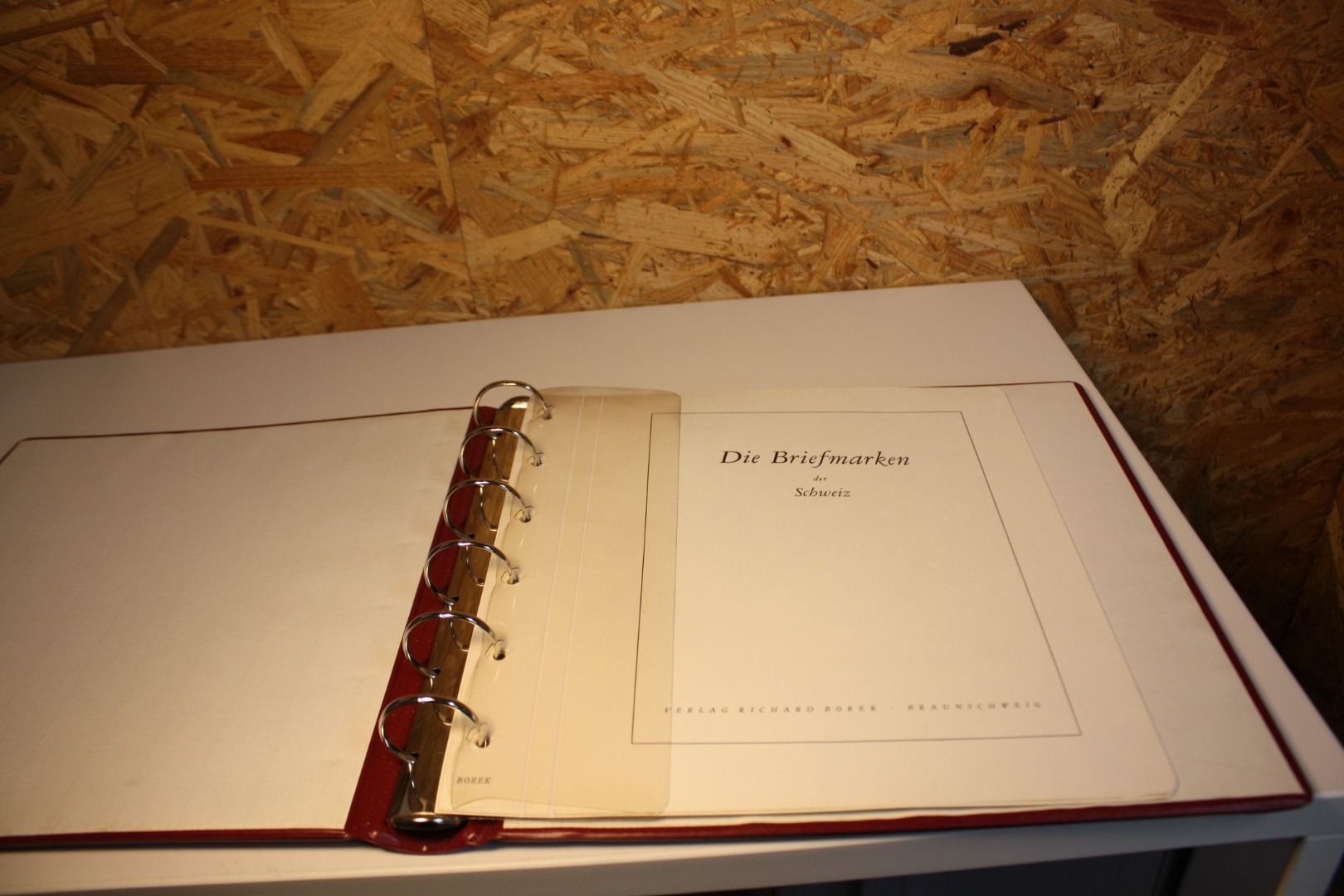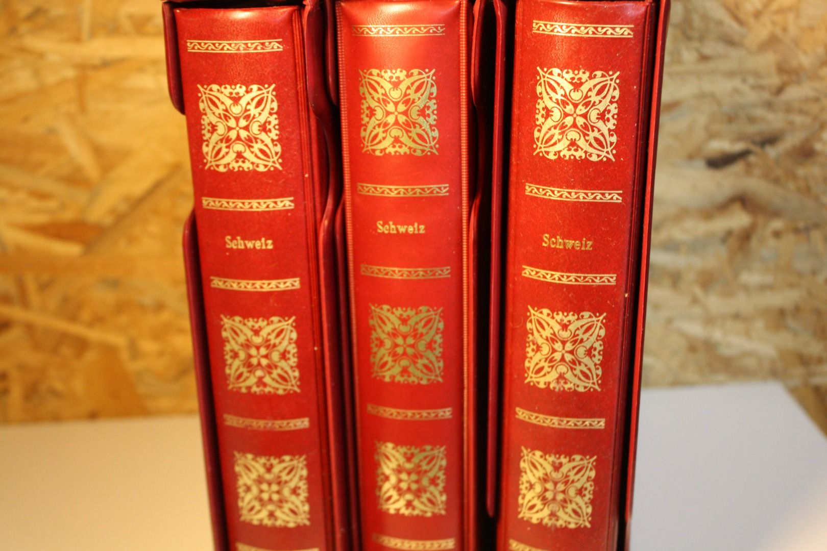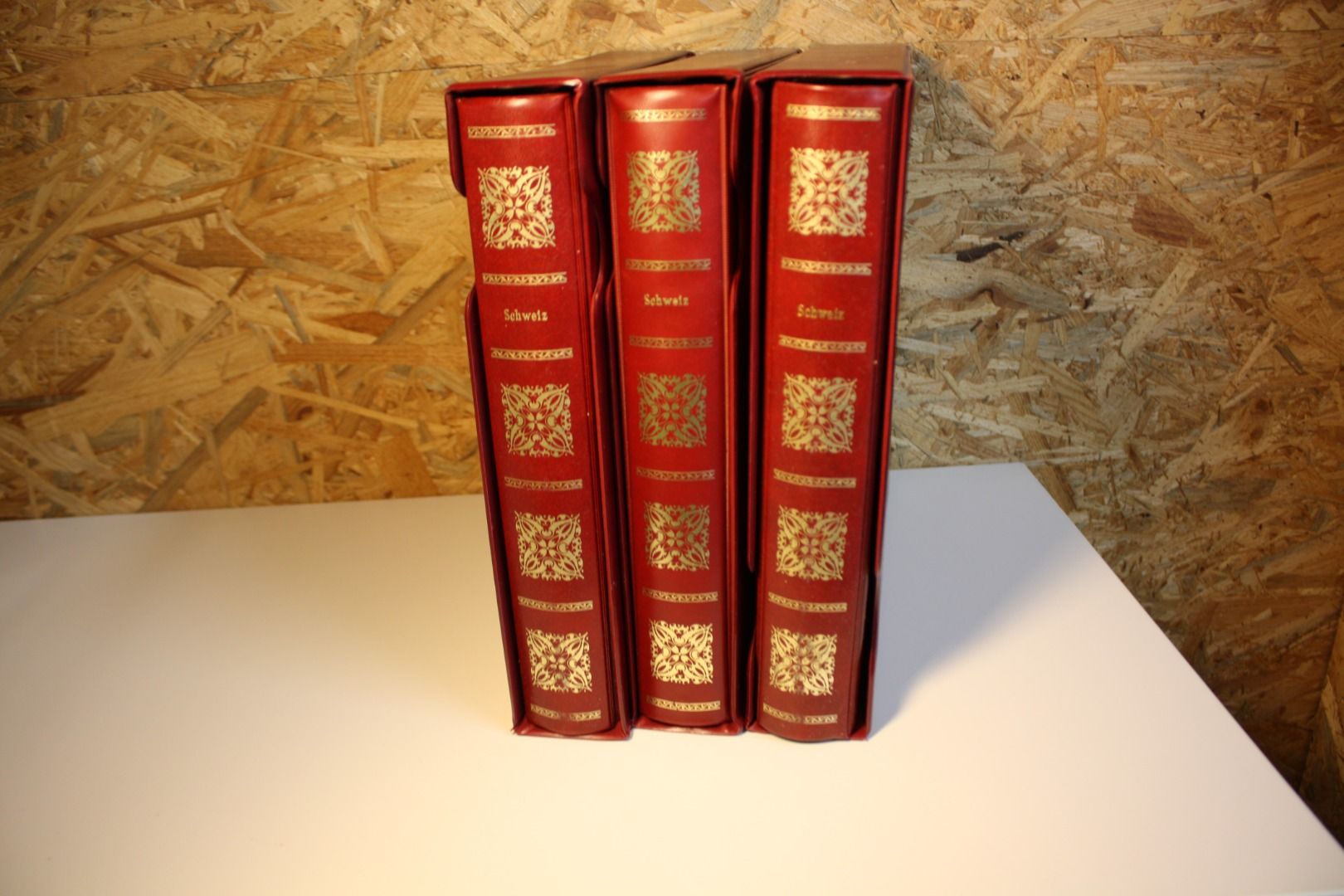 leere gut erhaltene Binder mit Gebrauchsspuren, inkl. Schuber, 3x mit Aufdruck Schweiz