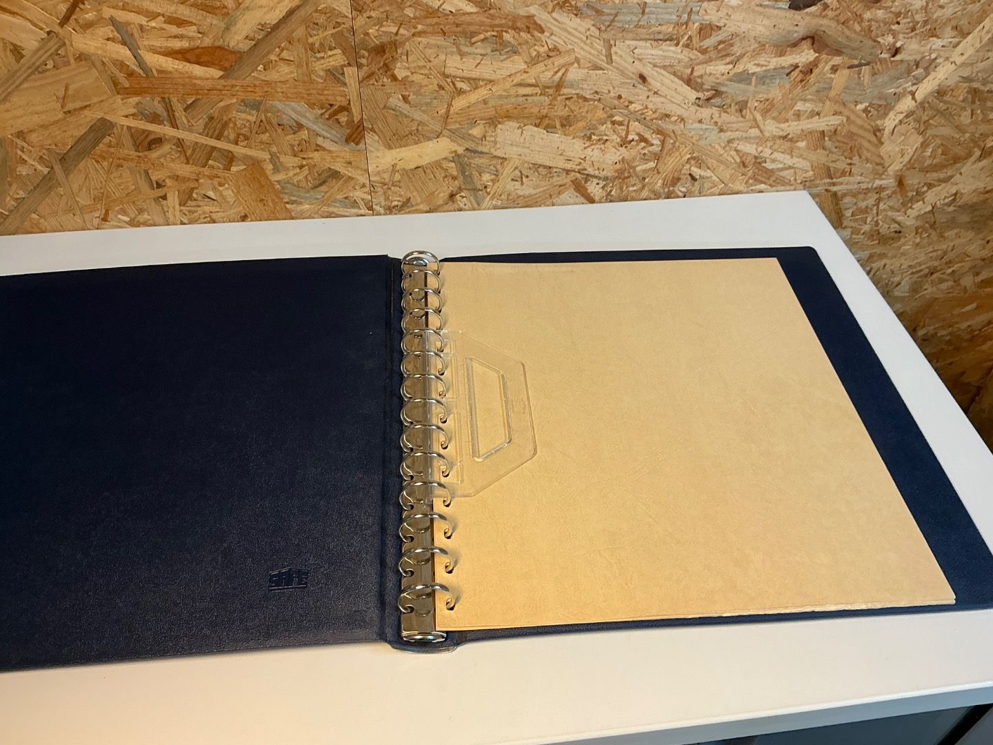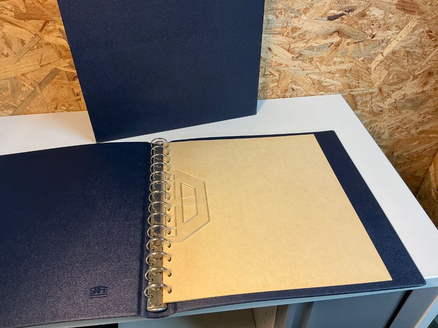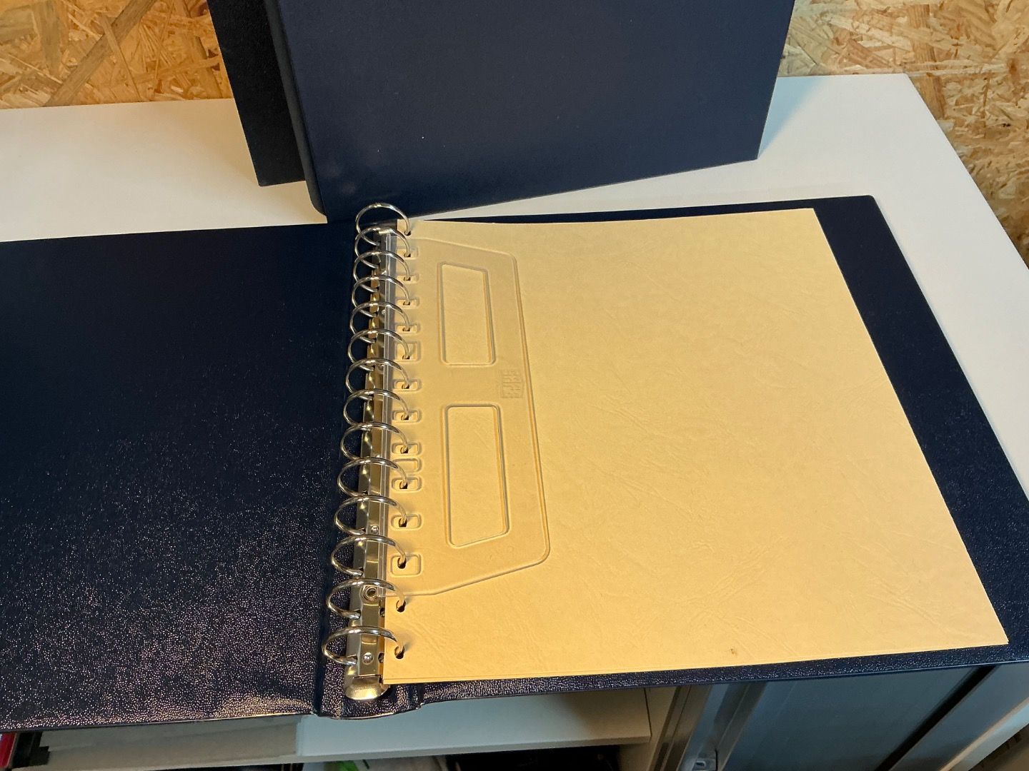 leerer gut erhaltener Binder mit Gebrauchsspuren, inkl. Deckblatt + Blattheber, inkl. 3 Schuber