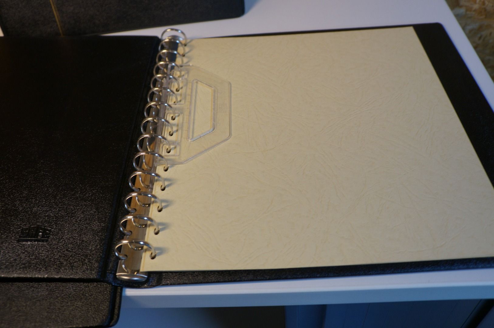 leere gut erhaltene Binder mit Gebrauchsspuren, inkl. Deckblatt + Blattheber,