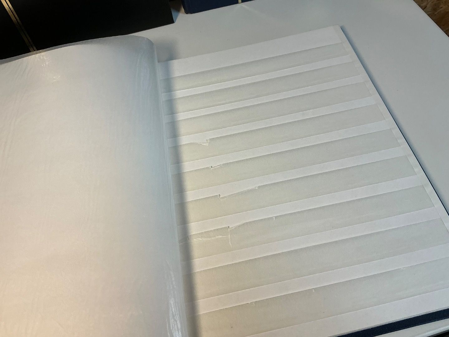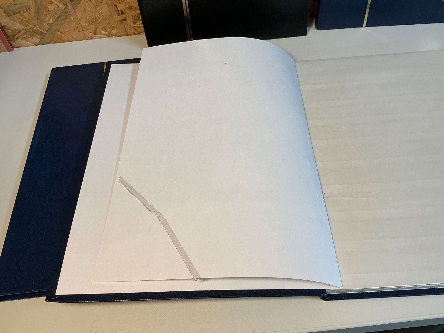 1 Album blau von Gode mit Mängeln (Seiten beschriftet, Folien ausgerissen, erste Innenseite beklebt => siehe Foto)