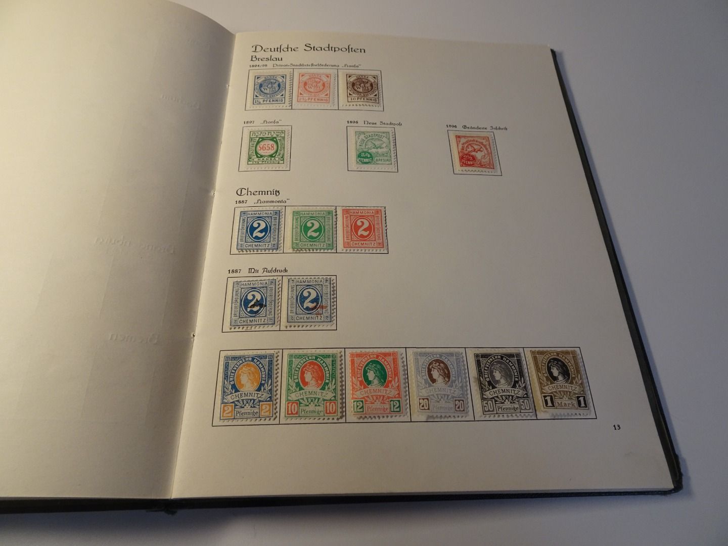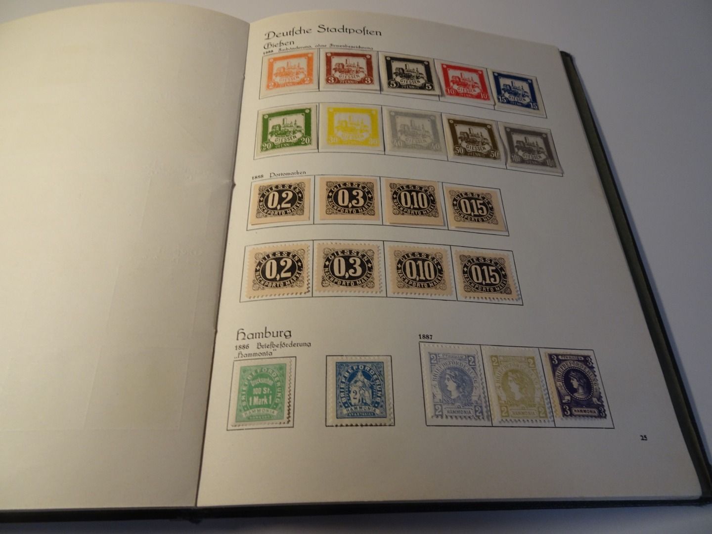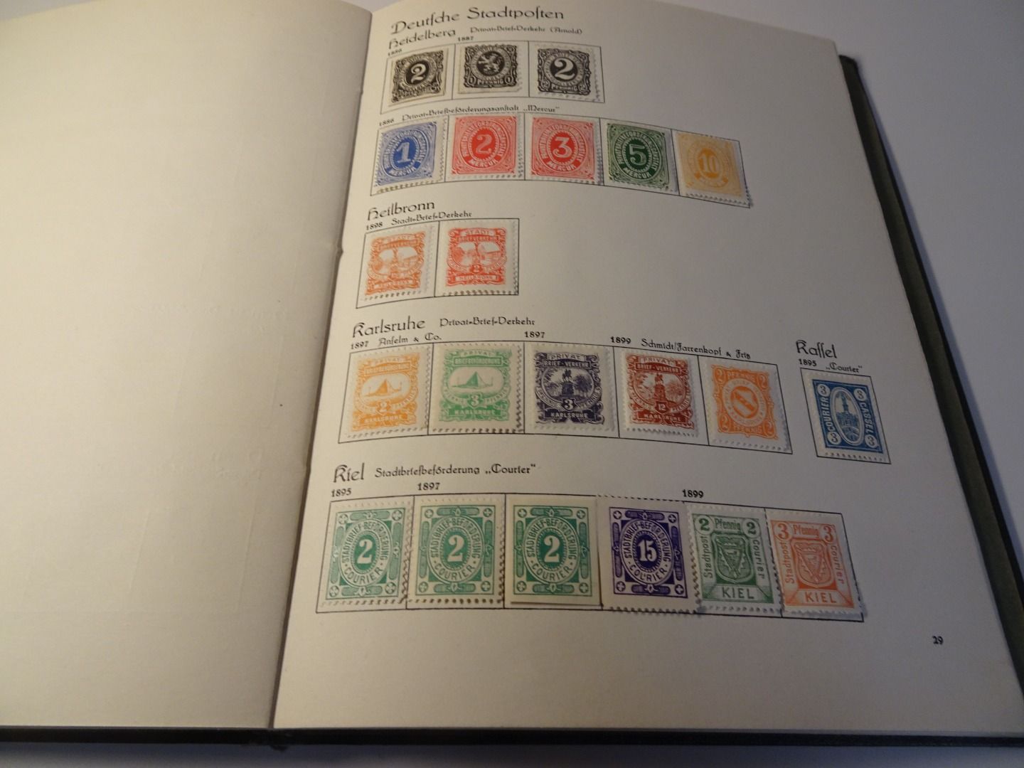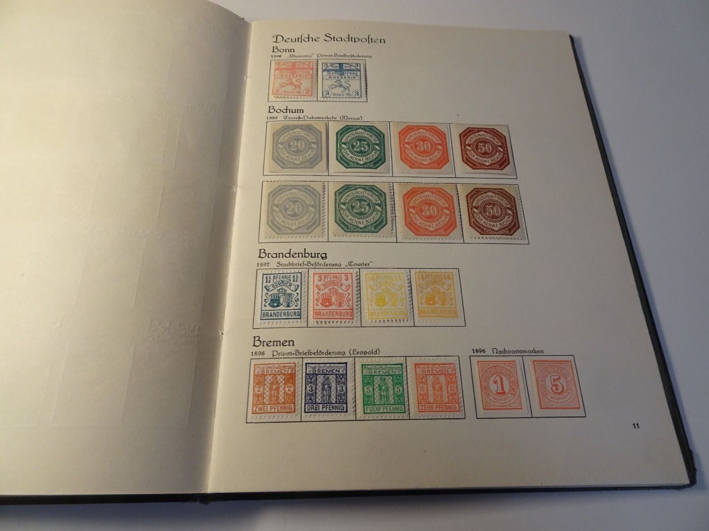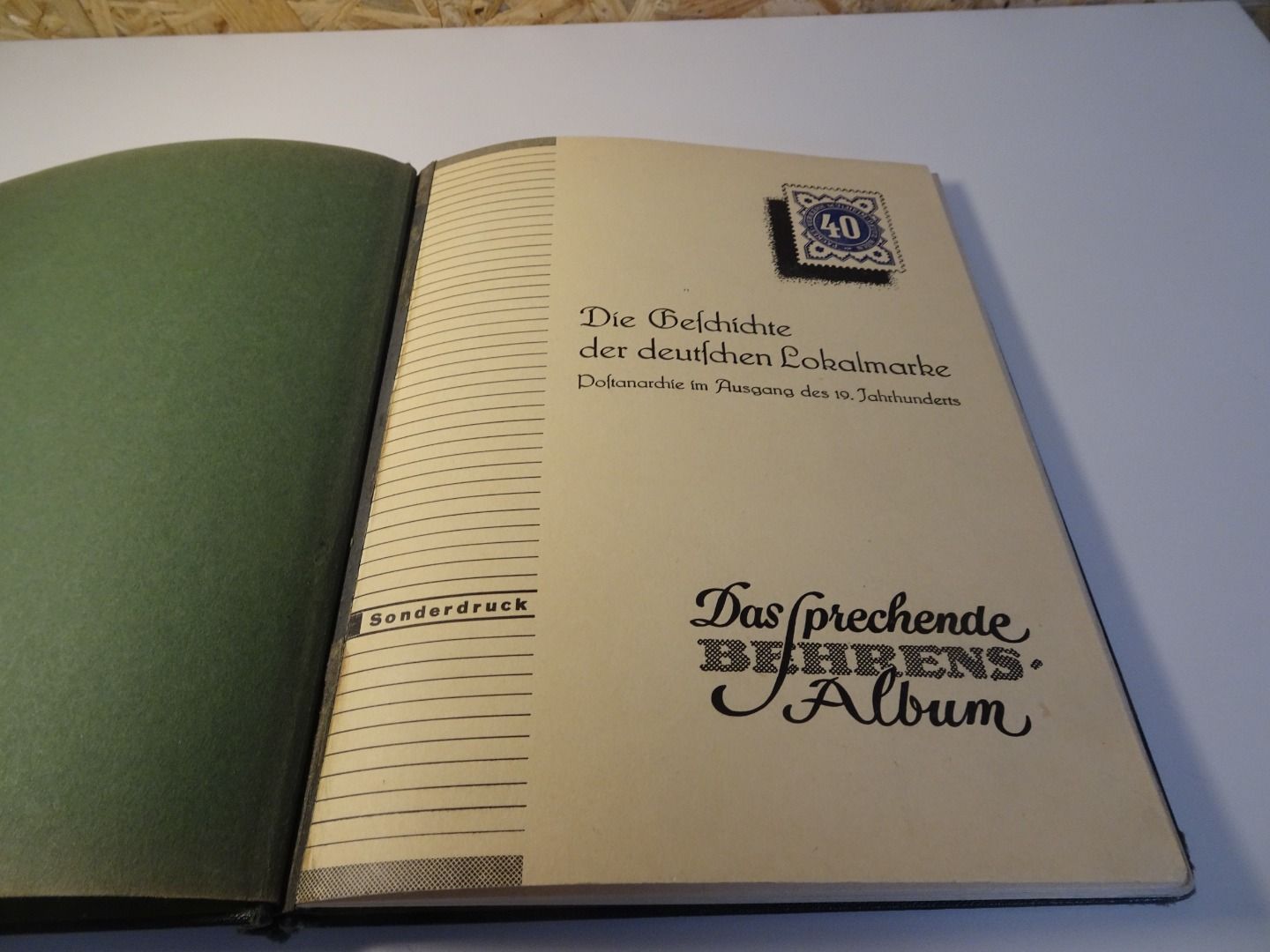 Sprechendes Behrens Album (mit Gebrauchsspuren vor allem am Rücken), komplett gefüllt mit Privatpost Marken, nach Vordruck komplett, alle Marken gefalzt