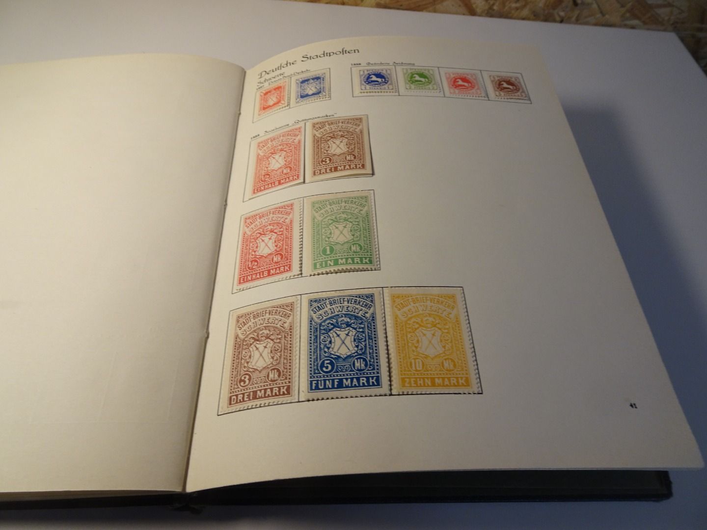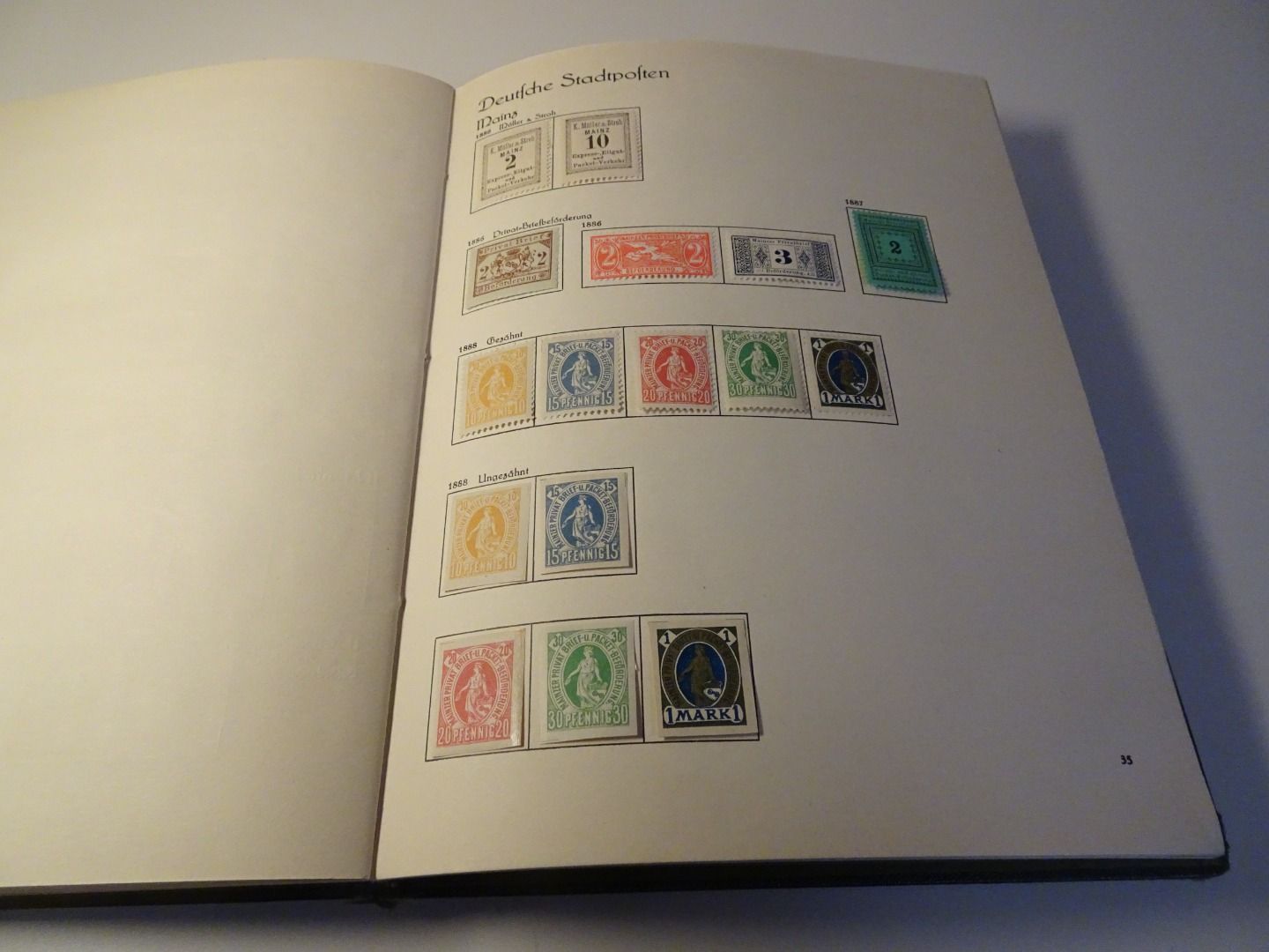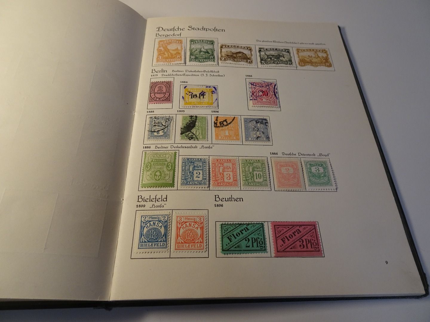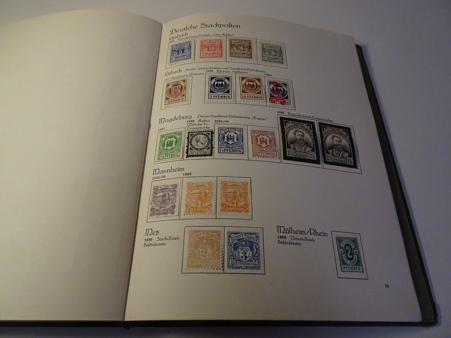 Sprechendes Behrens Album (mit Gebrauchsspuren vor allem am Rücken), komplett gefüllt mit Privatpost Marken, nach Vordruck komplett, alle Marken gefalzt