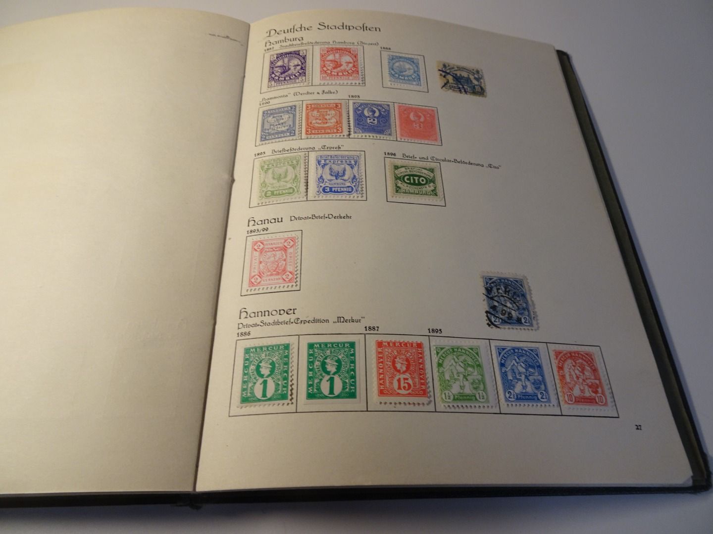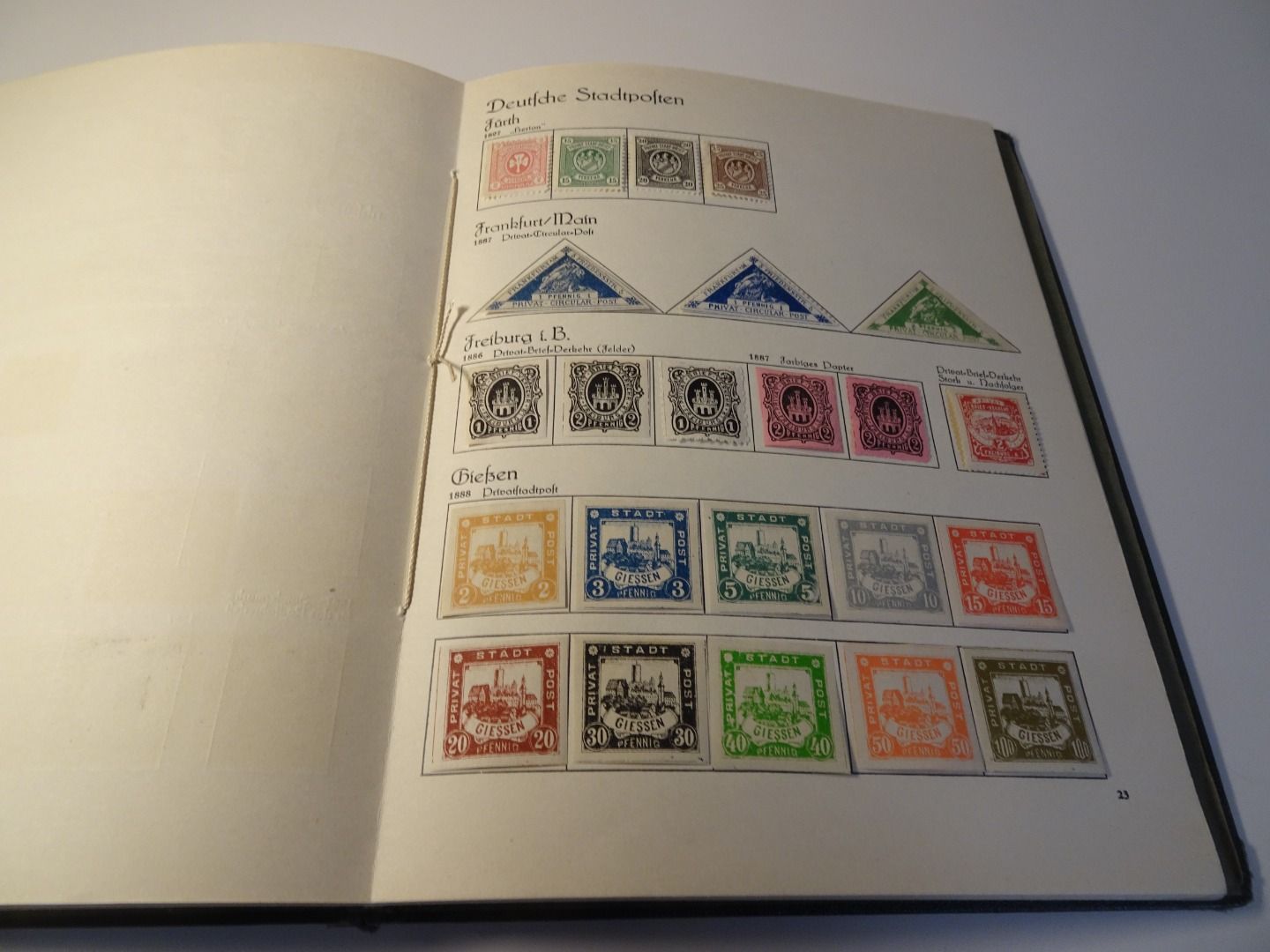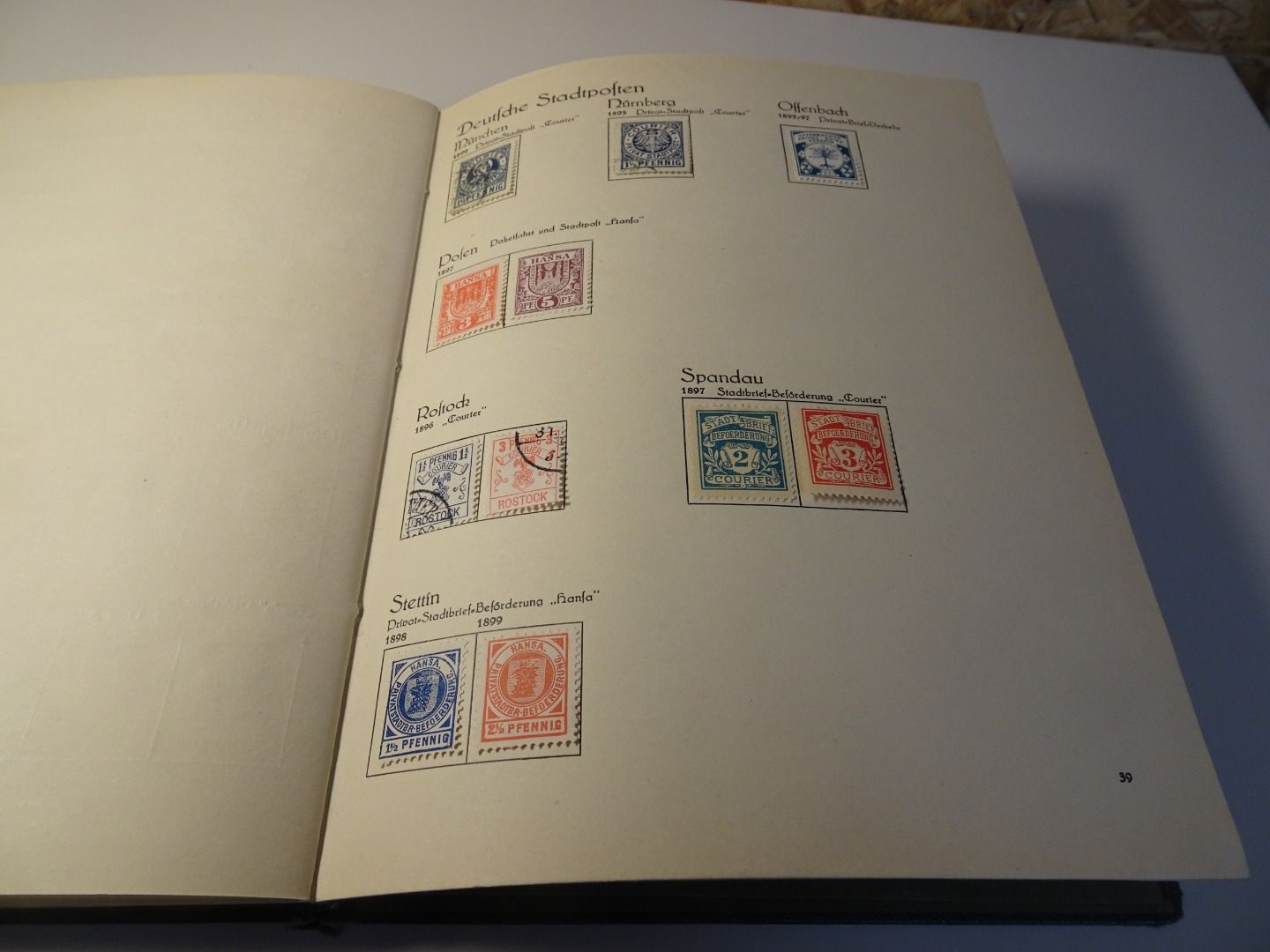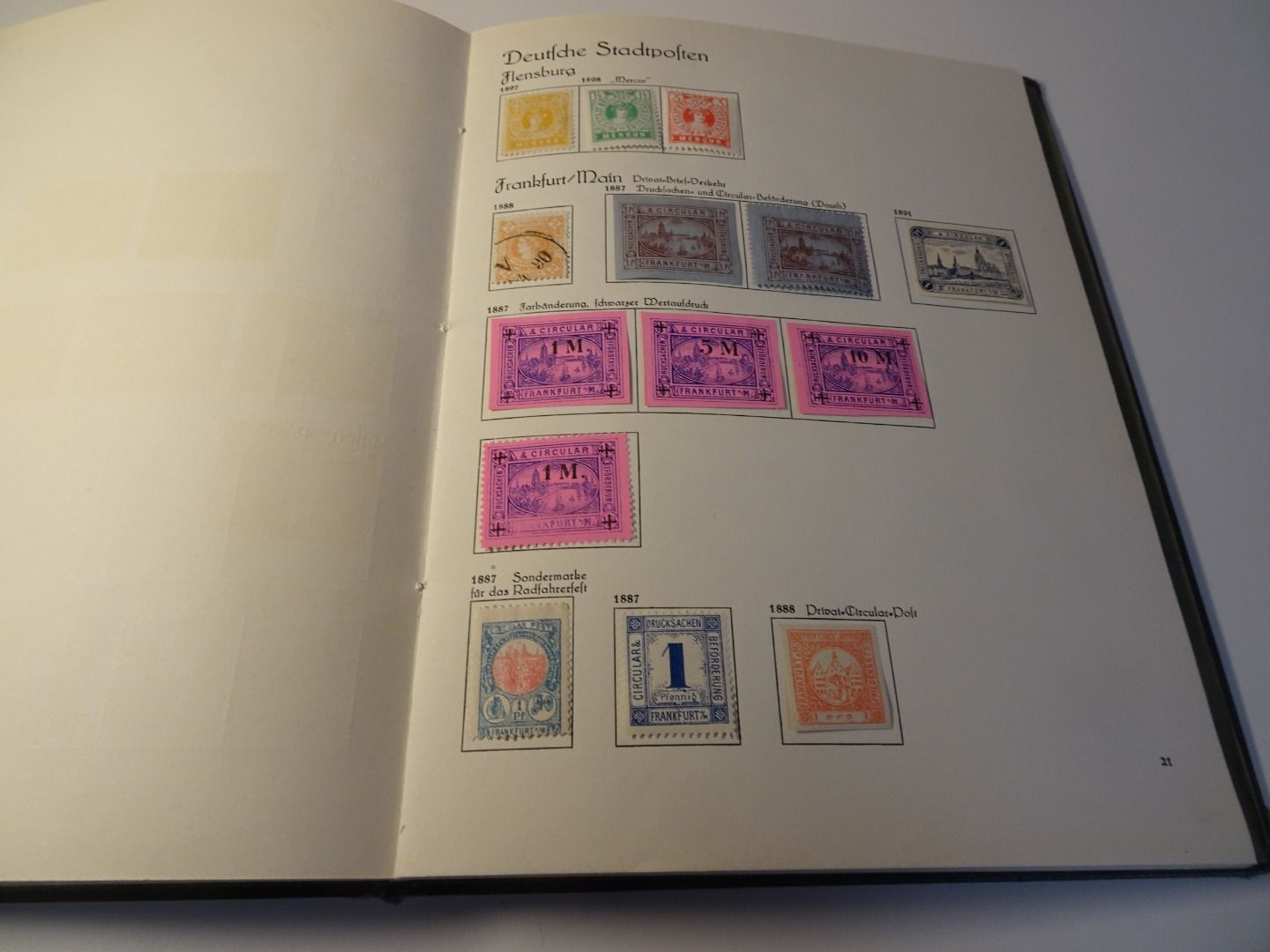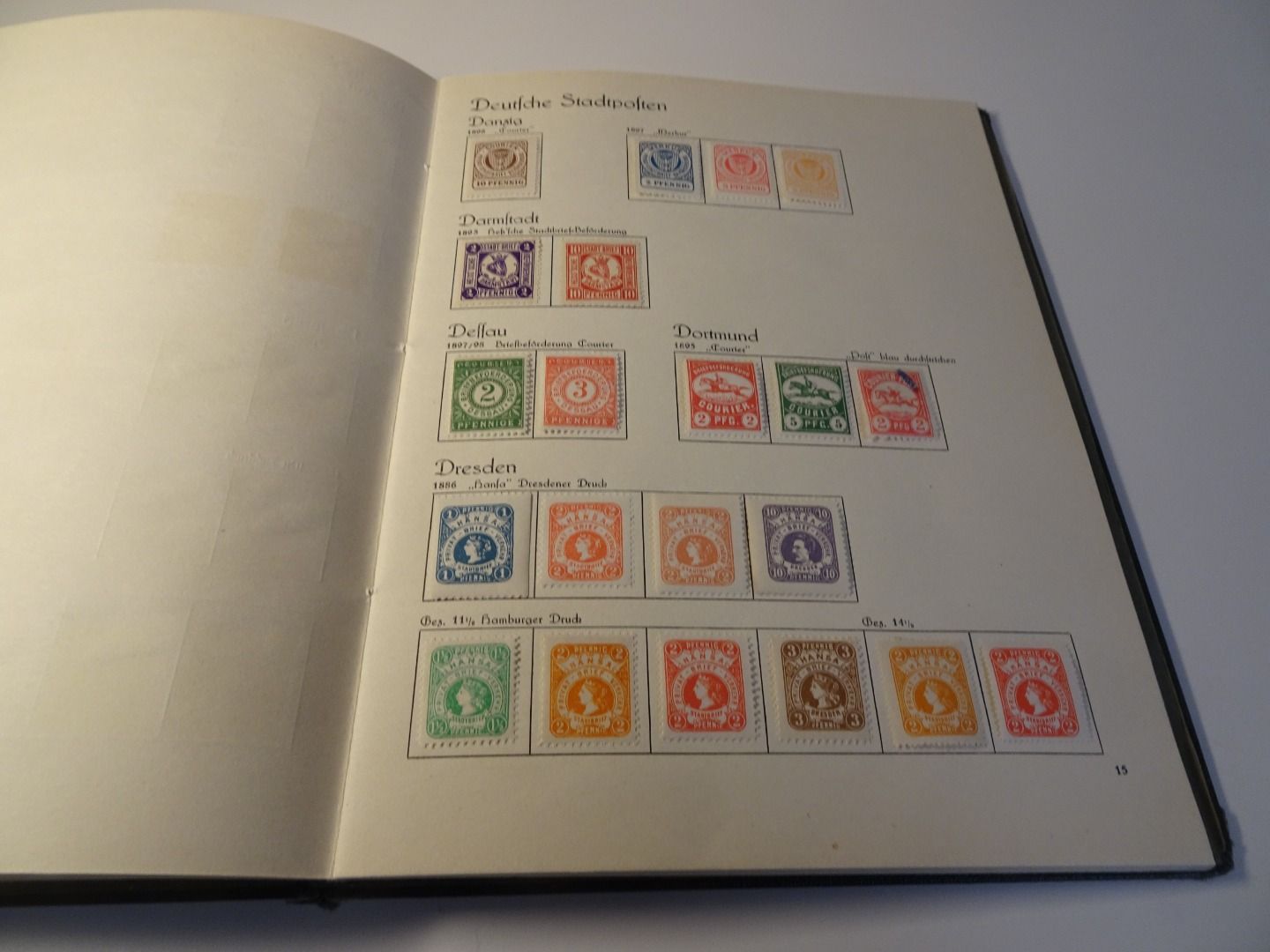 Sprechendes Behrens Album (mit Gebrauchsspuren vor allem am Rücken), komplett gefüllt mit Privatpost Marken, nach Vordruck komplett, alle Marken gefalzt