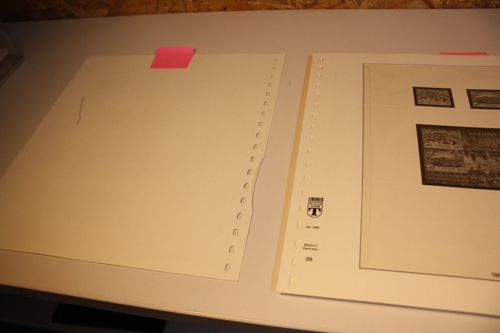 leerer gut erhaltener Vordruck mit Gebrauchsspuren, Lindner T System, 3 Blätter auf der Rückseite / Vorderseite schmutzig, Lindner 265 Blatt 37-54